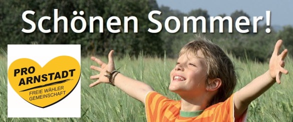 Es gibt also noch viel zu tun in unseren Städtchen Arnstadt – packen wir es an! Doch bis dahin wünscht Ihnen die Stadtratsfraktion sowie die Freie Wählergemeinschaft Pro Arnstadt ein paar erholsame Tage sowie einen schönen Urlaub!